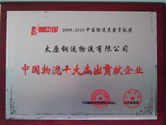 公司被授予“中國物流十大杰出貢獻(xiàn)企業(yè)”榮譽稱號