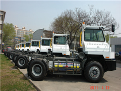 2011年4月12日,我公司購置的9臺重汽鋼廠轉(zhuǎn)運牽引車(LNG燃料車)到廠,即將投入使用。在全公司大范圍的使用LNG燃料汽車,結(jié)合甩掛牽引技術(shù)的推廣應(yīng)用,將顯著提高車輛利用效率,有效降低車輛運營成本。